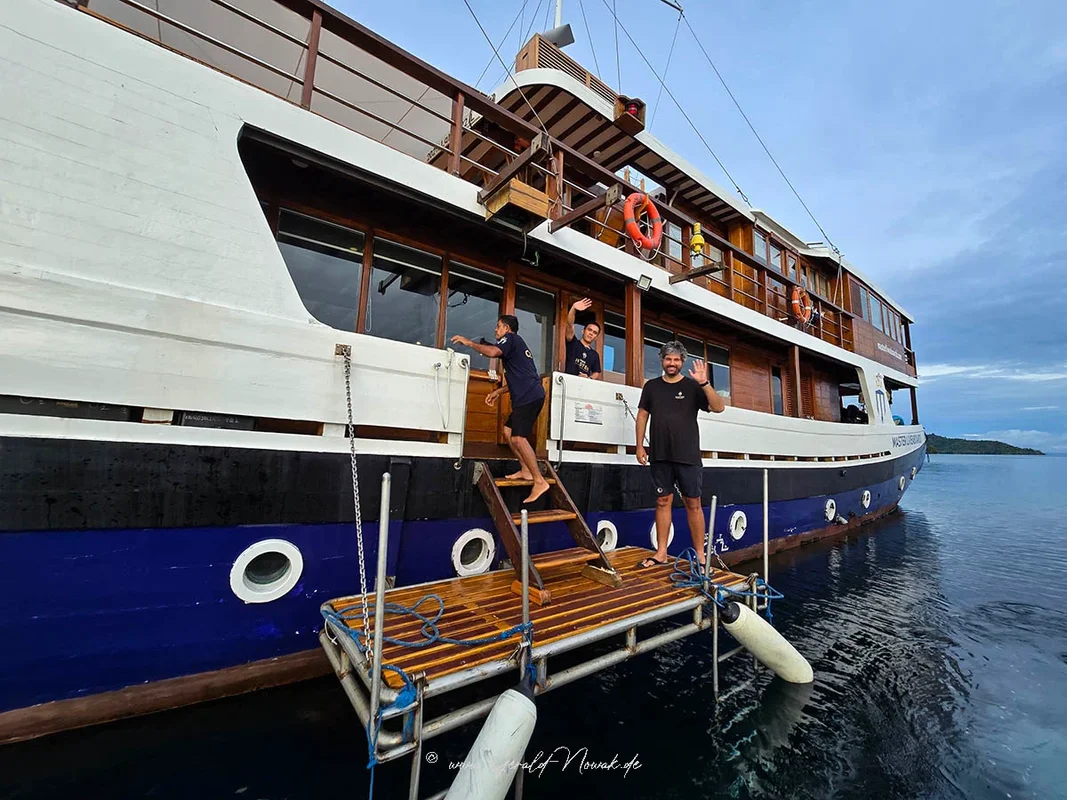 Built in 2022, the 47m Indo Master liveaboard was built on the Indonesian island of Sulawesi and is handcrafted from ironwood and teak (traditional to the area). You will find no other diving liveaboard as beautiful in Indonesian waters, and, being built by divers for divers, you can rest assured that every need has been thought of and catered for.