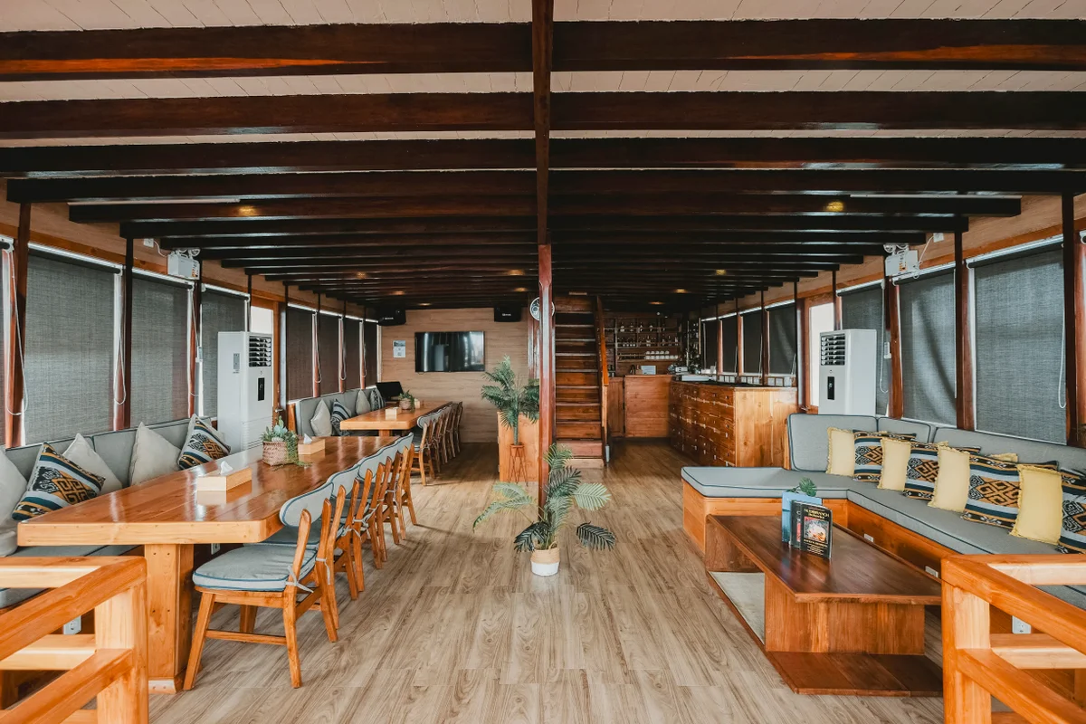 Welcoming a maximum of 18 guests per cruise ensures that there is ample space to relax. The 9 guest cabins consist of 4 fixed doubles, 4 fixed twins and 1 family suite (2 double beds), all with air-conditioning and private ensuite bathrooms with hot water. The beds are North European sizes, meaning they are significantly larger than many other liveaboards, and are fitted with premium bedding to add to their comfiness.
