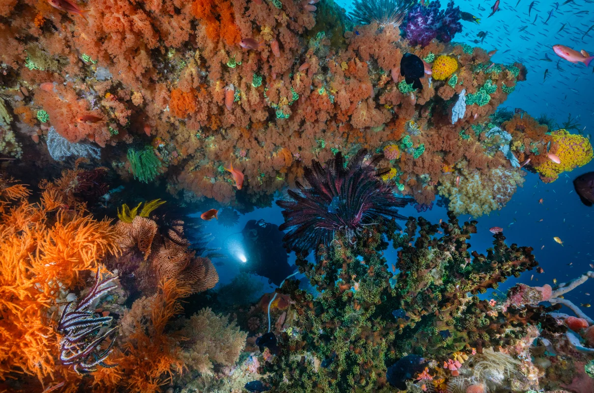Banda Islands: A group of volcanic islands rising from deep oceanic waters, characterised by dramatic walls, exceptional coral health and schooling fish action.