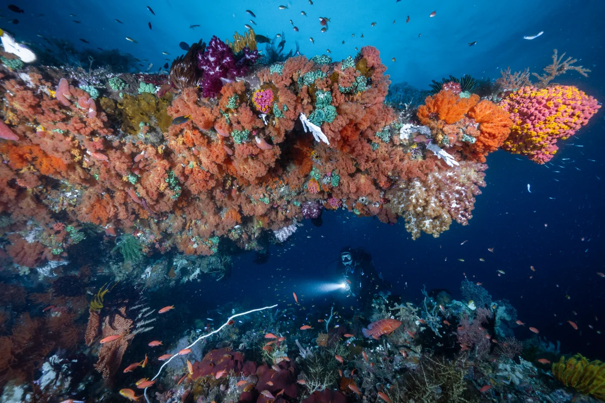 Raja Ampat is huge – 50,000 sq km – with hundreds of islands and an astounding diversity of habitats. This translates to wildly different diving experiences across the region, from drift dives and pelagic encounters to magic muck dives, and even some habitats that are special to Raja Ampat. Clear water mangroves with corals growing next to them support a variety of marine life, a lake full of stingless jellyfish and the atmospheric Boo Windows in Misool, and the world-famous Manta Sandy at the end of the Dampier Strait are just a few of the wonders Raja Ampat harbours. There are thousands of potential dive sites. Exploration and discoveries are still continuing, and on every trip, there are chances for finding something new and amazing.