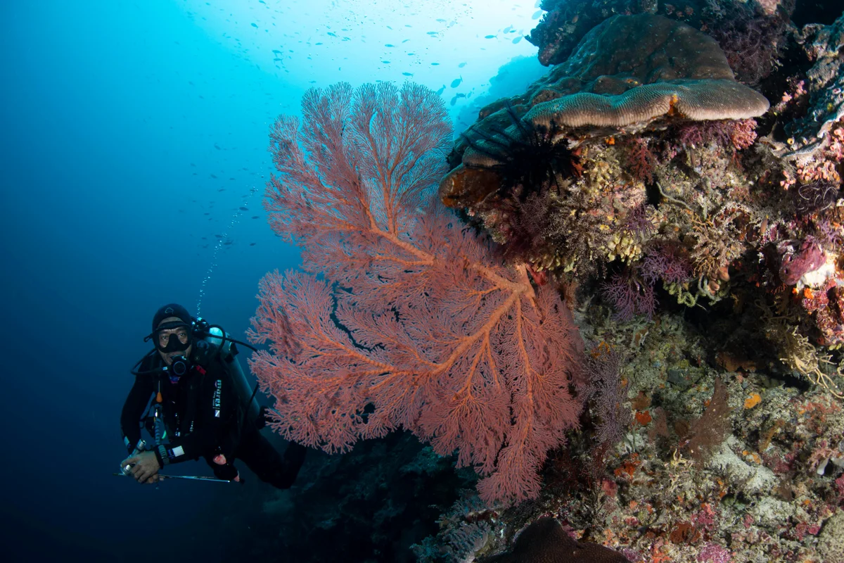 This 7-night Indonesia itinerary showcases the vibrant coral reefs of Wakatobi National Park together with the lesser-visited reefs surrounding Buton Island, revealing the diversity of liveaboard diving in the Coral Triangle. Located in Southeast Sulawesi, the Wakatobi Islands are internationally recognised for exceptional coral diversity and remarkably healthy reef ecosystems. The reefs of the Wakatobi Islands are celebrated for coral-covered reef slopes and walls densely layered with hard corals, sponges and sea fans, supporting thriving reef communities and dense schools of tropical fish. Recognised as a UNESCO Biosphere Reserve, the region hosts extraordinary marine biodiversity, from clouds of anthias and fusiliers moving along the reef to turtles, reef sharks and an impressive variety of reef invertebrates. Along the coastline of Buton and its surrounding islands, divers discover quieter reefs with coral gardens, reef slopes and occasional exposed sites where schooling fish and passing pelagic species may appear. Together these areas reveal a rewarding combination of protected coral ecosystems and rarely visited dive sites in Southeast Sulawesi.