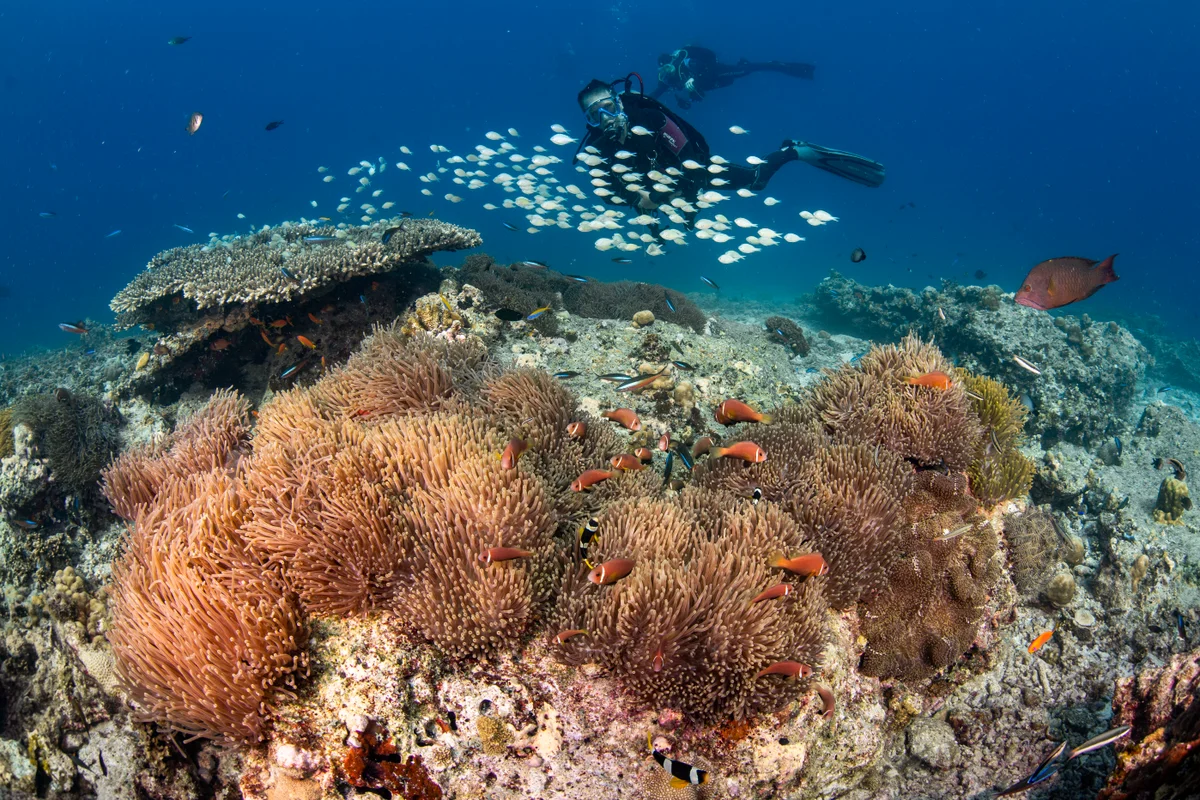 Lhaviyani Atoll offers exhilerating channel diving, and hosts some of the Maldives’ wreck diving opportunities, including the two coral-encrusted wrecks at ‘The Shipyard’.