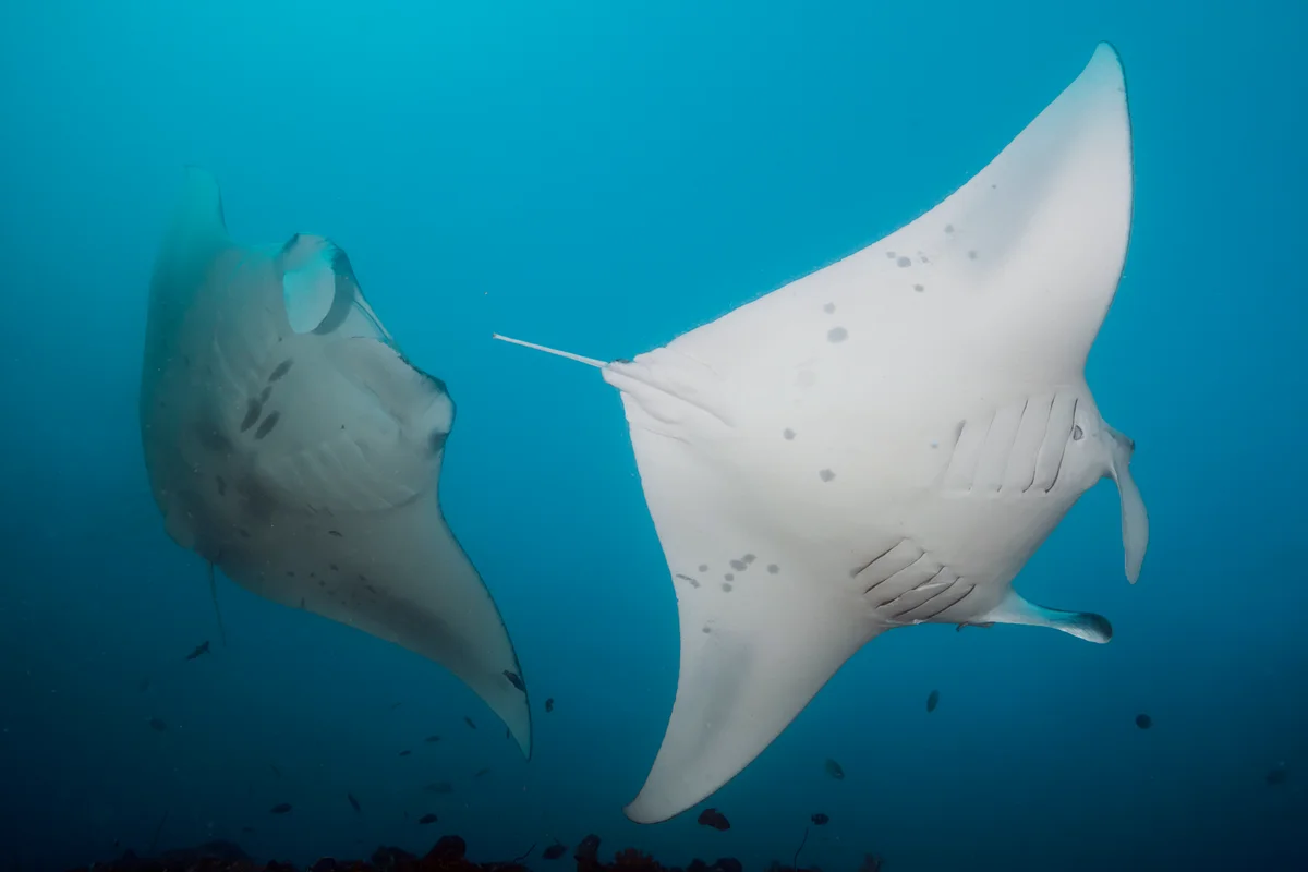 Known for year-round manta ray sightings, Addu Atoll is also home to various sharks, turtles, and abundant marine life. Inside the atoll, divers can explore the 140 metre long British Loyalty wreck, a WWII fuel tanker scuttled by the British Navy in 1946.