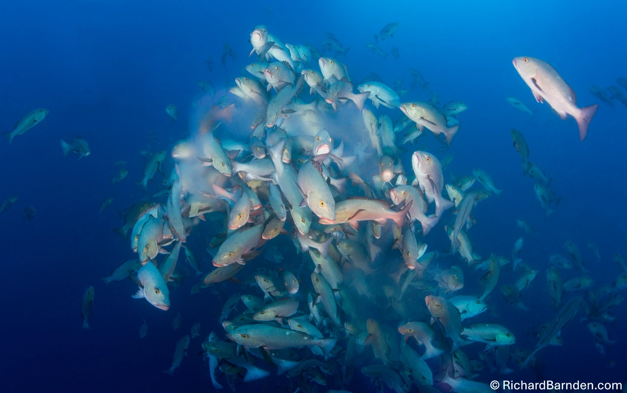 Around the time of the full moon in Palau, vast numbers of red snapper, also known as Twin-spot snapper, aggregate to perform a spawning spectacle full of energy and excitement. It is something only a select few people ever get to witness, and you can be one of them by joining one of Palau Siren’s full moon spawning itineraries. During the period of the liveaboard itinerary when the spawning activity will occur, Palau Siren’s Cruise Director will give a number of informative presentations about these unique dives, covering everything from the ecology of these events to the best way to photograph them.