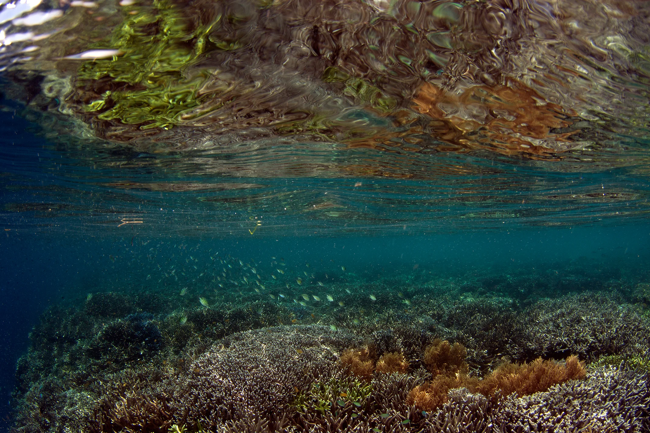 Underwater, the topography varies from shallow, sandy fringing reefs to steep walls dotted with sea-fans and sponges, whilst a couple of small plane wrecks and cars have formed artificial reefs. Common marine life sightings include green and hawksbill turtles, schools of barracuda and jacks, whilst large numbers of red-tooth trigger fish, pyramid butterfly fish and blue lined fusiliers are seen on almost every dive. Smaller creatures such as frogfish, ghost pipefish, octopus and pygmy seahorses are found at several of the dive sites and of course a wide range of nudibranchs, shrimps and crabs can be found on each reef.