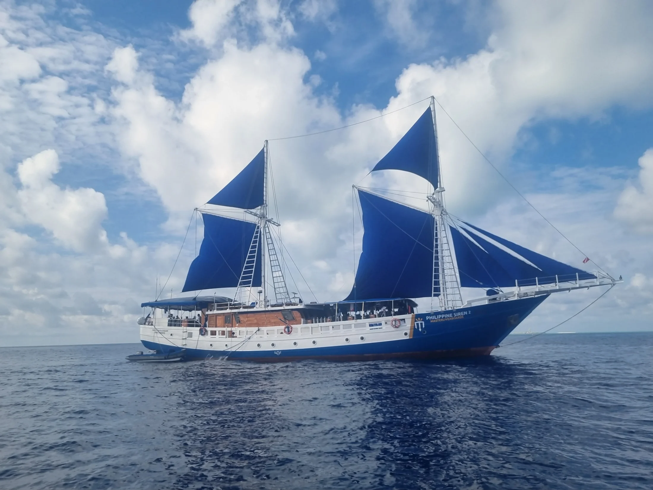 The 40 metre Philippine Siren liveaboard was built on the Indonesian island of Sulawesi. Handcrafted from ironwood and teak (traditional to the area), you will find no other dive liveaboard as beautiful in waters of the Philippines.