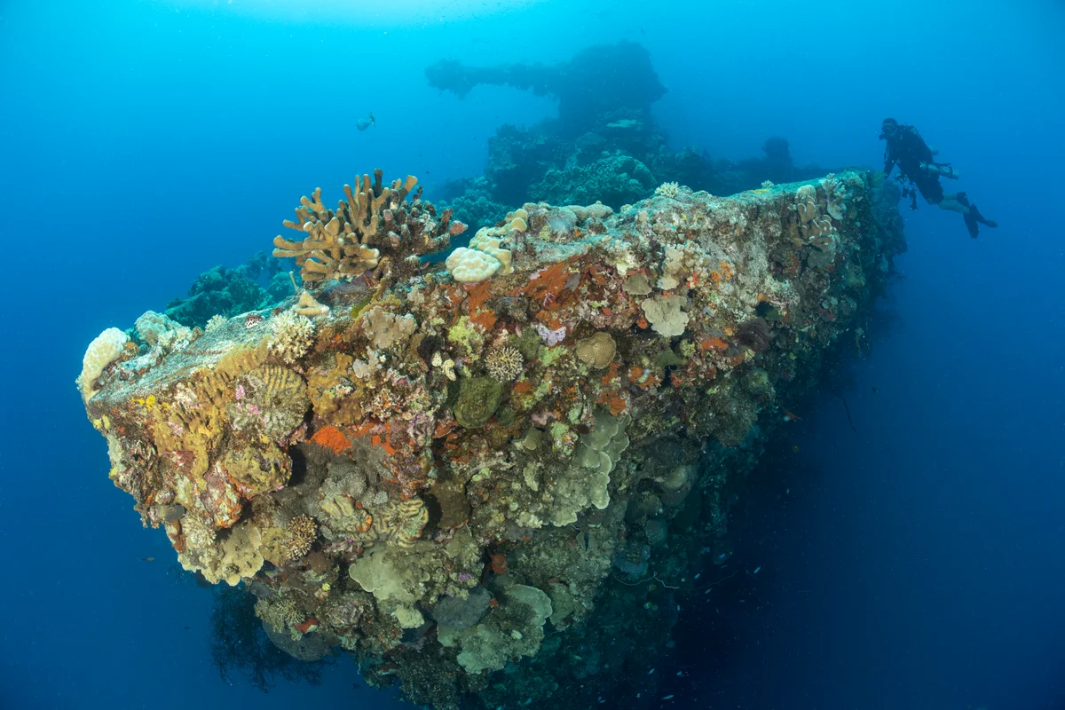 Dive the legendary WWII wrecks of Truk Lagoon on a 9-night liveaboard itinerary on Pacific Master. Explore the haunting remains of the Japanese Imperial Navy fleet, scattered across Truk Lagoon's seabed at depths ranging from 10 metres to 60+ metres. Many of these historic wrecks are “Maru” merchant vessels, sunk at anchor during Operation Hailstone and now transformed into underwater museums and thriving artificial reefs.
